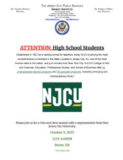 Please join us for a Chat and Chew session with a representative from New Jersey City University.